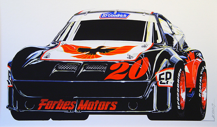 All three were published with the print "73 Corvette" released as the first ever print by the studio. Both the "73 Corvette" and the "Ferrari Daytona" editions were very small and almost immediately sold out. The third, "84 Corvette" was released in two editions, one a commercial release for BFGoodrich to promote the launch of their Comp T/A tire line and a second edition featuring non-commercial text.